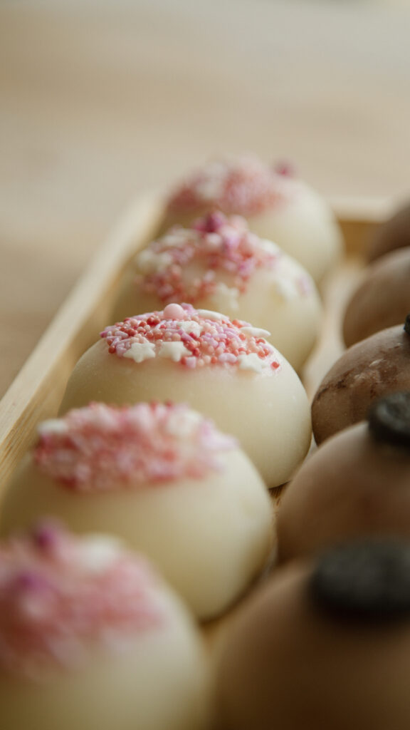 - Formowanie i montaż: precyzyjne zamykanie nadzień w cieście ryżowym dla uzyskania estetycznego kształtu.
